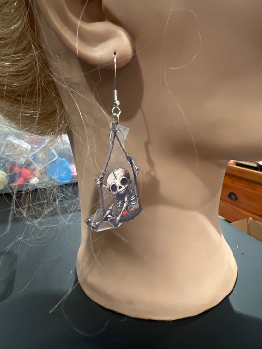 Skeleton Swinging Sterling Silver Dangle Earrings