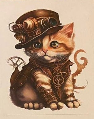 Steampunk Kittens aka “Agent Bean McMittens” Watercolor Waterproof Stickers