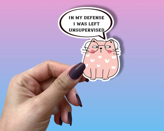 In My Defense I Was Left Alone Sticker Metaphysical