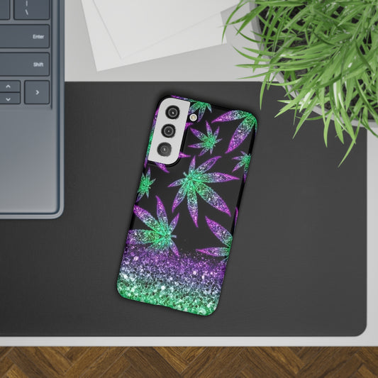 Marijuana Weed Leaf Glitter Slim Phone Case - Samsung